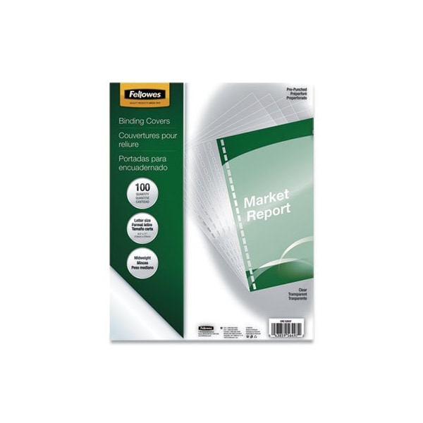 Fellowes, Crystals Presentation Covers W/square Corner, 3-Hole, 11 X 8 1/2, Clear, 100PK