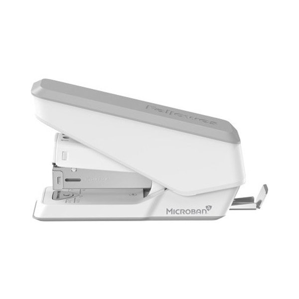 With Microban antimicrobial technology, jam-free performance and effortless stapling, the LX840 EasyPress Half Strip Stapler is the stapler everyone will want to borrow. It is treated with Microban antimicrobial technology to help prevent bacteria and works 24/7 for an added level of product protection. Smooth, jam-free performance ensures successful stapling every time. Built-in stapler remover makes removing staples simple. Metal stapler fastens up to 25 sheets at a time with 1/4" staples (not included) and delivers a standard clinch. Durable, high-quality design and quiet performance are perfect for home or office. Ergonomic grip allows an easy, smooth stapling. Stapler holds half strip of staples and features a low-staple indicator.