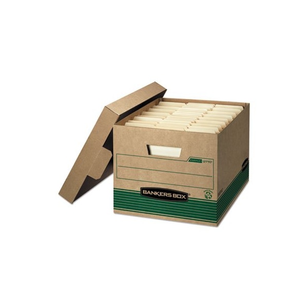 Double-end, single-side construction. Medium-duty for use w or without shelving. FastFold quick and easy assembly. Deep, locking, lift-off lid stays in place for secure file storage. Box Type: Stackable File Storage; Box Style: FastFold Quick & Easy Assembly; Strength: Medium-Duty; File Size Format: Letter/Legal.