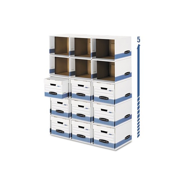 Keeps your letter/legal file boxes accessible during temporary storage. Flip the lid and place the box inside for frequent, easy access to your files. Modular shell with steel supportstacks five units high to save floor space and eliminates the need to stack or re-stack individual boxes. Durable construction with wire frames that clip together vertically and horizontally to ensure stability. Features Quick Set-Up assembly. File Box Accessory Type: Shell; For Use With: Letter/Legal-Sized Lift-Off Lid Filing Boxes; Inner Width: 12in; Inner Height: 15in.