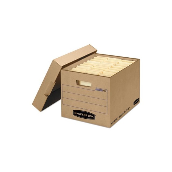 Quickly flip from flat to finished. Superior stacking strength makes transport easy and minimizes re-boxing. Features secure locking lid, larger labeling area, and a staple-free box design. Box Type: Stackable File Storage; Strength: Standard-Duty; File Size Format: Letter/Legal; Width: 13in.