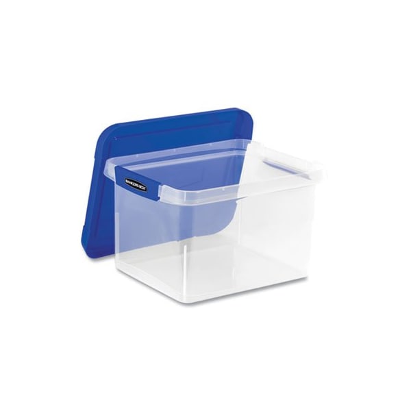 The Bankers Box Heavy Duty Plastic File Storage provides organized and secure storage of documents. Made with durable plastic construction and features reinforced corners for added strength stacks up to five high! Comfortable handles offer easy lifting and the locking lid ensures secure transport. Built-in hanging rail keeps files organized and accessible. The heavy duty plastic file storage box is perfect for office or home office use. Box Type: File Storage; Strength: Heavy-Duty; File Size Format: Letter/Legal; Width: 14in.