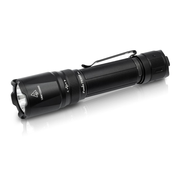Tactical Flashlight, Battery Chemistry Lithium Ion, Battery Size 21700, Includes Batteries Yes, Number of Batteries 1, Rechargeable Yes, Beam Pattern Spot, Body Color Black, Body Material Aluminum, Lighting Technology LED, Number of Light Output Modes 5, Maximum Beam Distance 1,558 ft, Maximum Brightness 3,000 lm, Run Time at Maximum Brightness 2 hr, Weight with Batteries 7.2 oz, Charger Style Included USB Type-C Charging Cable, Includes Charger No, Beam Color White, Beam Focus Fixed