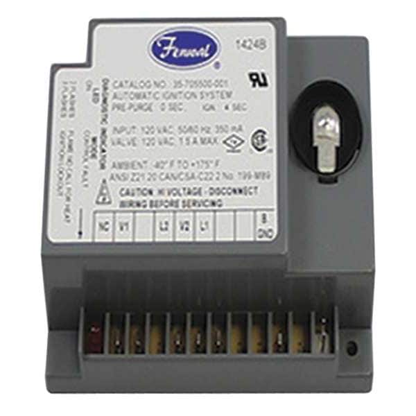 Ignition Control, Product Type Ignition Control, Maximum Operating Temperature 175 Degrees F, Minimum Operating Temperature -40 Degrees F, Pre-Purge Time Not Applicable, Flame Sensor Current Output 1 uA, Compatible with Brand Fenwal Ignition Controls, Control Voltage 120V AC, Overall Height 3 1/2 in, Overall Width 5 1/8 in, Overall Depth 2 in, Igniter Warm Up Time 4 sec, Input Voltage 102 to 138V AC, For Fuel Type LP, Natural Gas