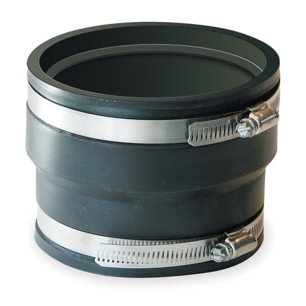 Flexible Reducing Coupling, For Nominal Pipe Size 4 in, PVC, 4 in, 4 3/8 in, 4 1/8 in, Female, 4 in, 4 3/4 in, 3 15/16 in, Female, 3 15/16 in Overall Length