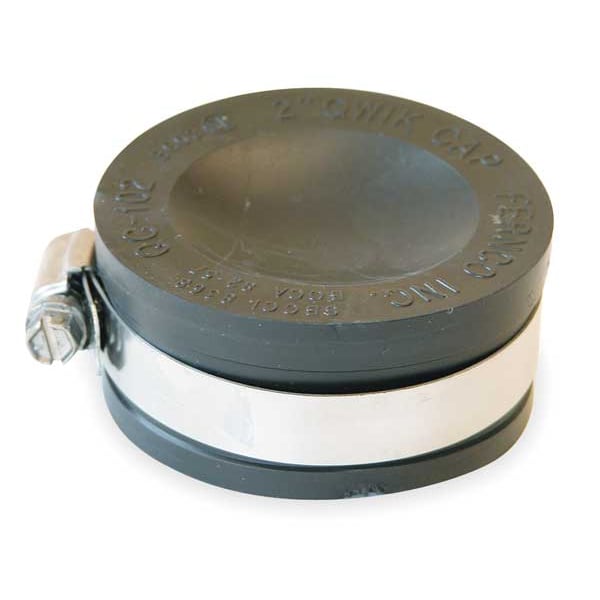 Cap, PVC, 2 in Nominal Pipe Size, 2 3/8 in Inside Diameter, 1 1/8 in Overall Length, 4.3 psi Maximum Operating Pressure, 140 Degrees F, Includes Clamp Clamp Included, Number of Clamps included 1, Clamp Material Stainless Steel, Clamp Type Interlocked Worm Gear, Includes Shield Shield Not Included, Shield Material Not Applicable, Black