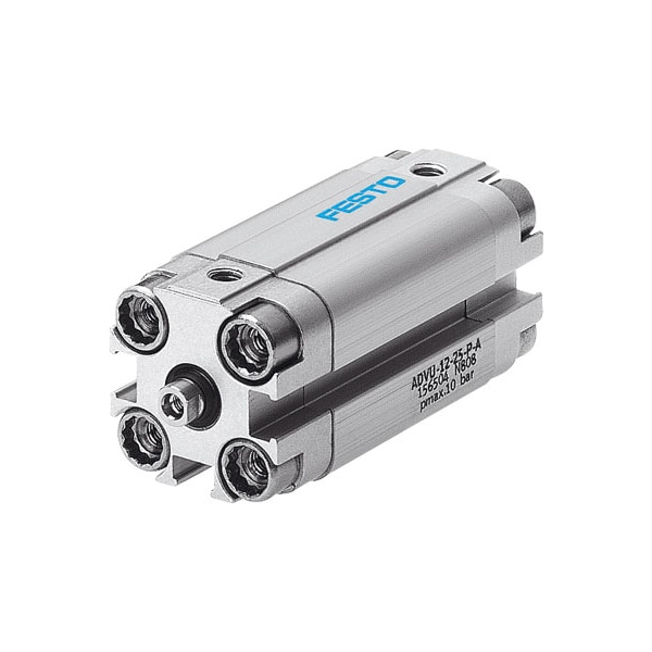 Compact Cylinder Advu-12-5-P-A For Proximity Sensing, Piston-Rod End With Female Thread. Stroke=5 Mm, Piston Diameter=12 Mm, Cushioning=P: Flexible Cushioning Rings/Plates At Both Ends, Assembly Position=Any, Mode Of Operation=Double-Acting