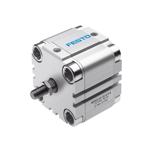 Compact Cylinder Aevuz-50-25-A-P-A For Proximity Sensing, Piston-Rod End With Male Thread. Stroke=25 Mm, Piston Diameter=50 Mm, Cushioning=P: Flexible Cushioning Rings/Plates At Both Ends, Assembly Position=Any, Mode Of Operation=(* Single-Acting, * Pulling Action)