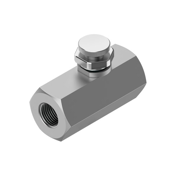 Flow Control Valve Gro-1/4 Valve Function=Throttle Function, Pneumatic Connection, Port 1=G1/4, Pneumatic Connection, Port 2=G1/4, Adjusting Element=Knurled Screw, Mounting Type=Line Installation