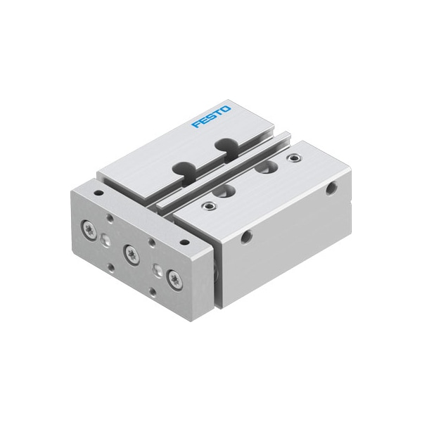 Guided Drive Dfm-12-25-P-A-Gf With Integrated Guide. Centre Of Gravity Distance From Working Load To Yoke Plate=25 Mm, Stroke=25 Mm, Piston Diameter=12 Mm, Operating Mode Of Drive Unit=Yoke, Cushioning=P: Flexible Cushioning Rings/Plates At Both Ends