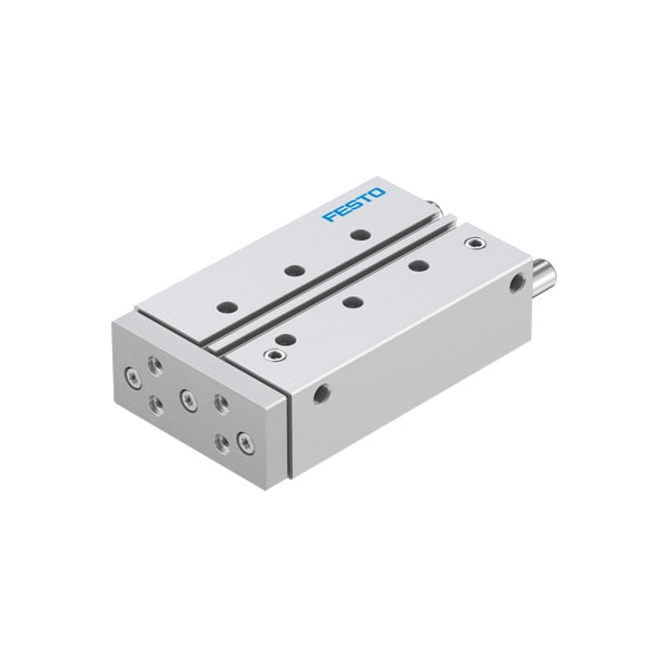 Guided Drive Dfm-25-100-P-A-Kf With Integrated Guide. Centre Of Gravity Distance From Working Load To Yoke Plate=50 Mm, Stroke=100 Mm, Piston Diameter=25 Mm, Operating Mode Of Drive Unit=Yoke, Cushioning=P: Flexible Cushioning Rings/Plates At Both Ends