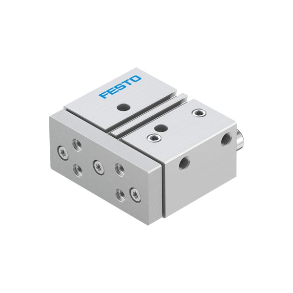 Guided Drive Dfm-25-20-P-A-Gf With Integrated Guide. Centre Of Gravity Distance From Working Load To Yoke Plate=50 Mm, Stroke=20 Mm, Piston Diameter=25 Mm, Operating Mode Of Drive Unit=Yoke, Cushioning=P: Flexible Cushioning Rings/Plates At Both Ends