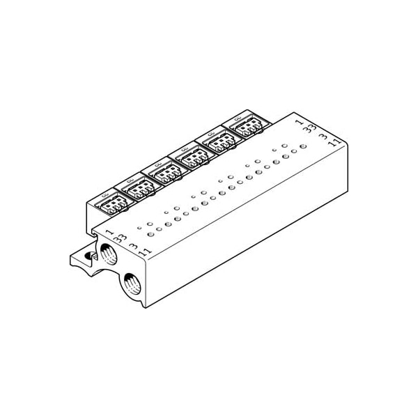 Manifold Block Mhp1-Pr8-3-Pi With Plug Bases, For Semi In-Line Valves Mhp1-...-Pi Max. Number Of Valve Positions=8, Operating Pressure=0 - 8 Bar, Operating Medium=Compressed Air In Accordance With Iso8573-1:2010 [7:4:4], Note On Operating And Pilot Medium=Lubricated Operation Possible (Subsequently Required For Further Operation), Corrosion Resistance Classification Crc=1 - Low Corrosion Stress