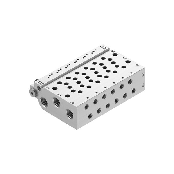 Manifold Rail Vabm-L1-10W-G18-5 Grid Dimension=10,5 Mm, Max. Number Of Valve Positions=16, Operating Pressure=-0,9 - 10 Bar, Authorisation=(* Rcm Mark, * C Csa Us (Ol), * C Ul Us - Recognized (Ol)), Corrosion Resistance Classification Crc=2 - Moderate Corrosion Stress