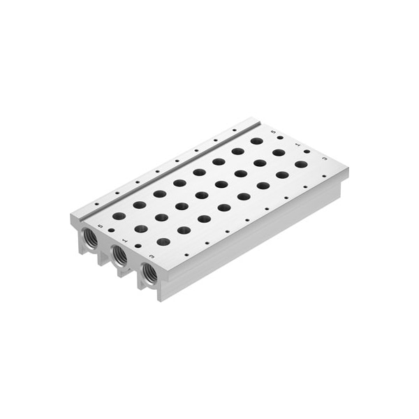 Manifold Rail Vabm-L1-18S-G38-7 Grid Dimension=19 Mm, Max. Number Of Valve Positions=16, Operating Pressure=-0,9 - 10 Bar, Authorisation=(* Rcm Mark, * C Csa Us (Ol), * C Ul Us - Recognized (Ol)), Corrosion Resistance Classification Crc=2 - Moderate Corrosion Stress