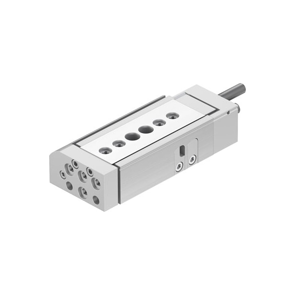 Mini Slide Dgsl-8-20-P1A For Position Sensing, With Highly Accurate, Durable Ball-Cage Guide And Very High Repetition Accuracy, Flexible Damping On Both Sides With Metallic End Position (P1). Stroke=20 Mm, Adjustable Endposition Range/Front Length=29,5 Mm, Adjustable Endposition Range/Rear Length=18,5 Mm, Piston Diameter=10 Mm, Operating Mode Of Drive Unit=Yoke