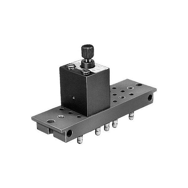 One-Way Flow Control Valve Grf-Pk-3 With Sub-Base 2N And Barbed Fitting For Tubing Nd 3. Valve Function=One-Way Flow Control Function, Pneumatic Connection, Port 1=Pk-3, Pneumatic Connection, Port 2=Pk-3, Adjusting Element=Knurled Screw, Mounting Type=With Through Hole