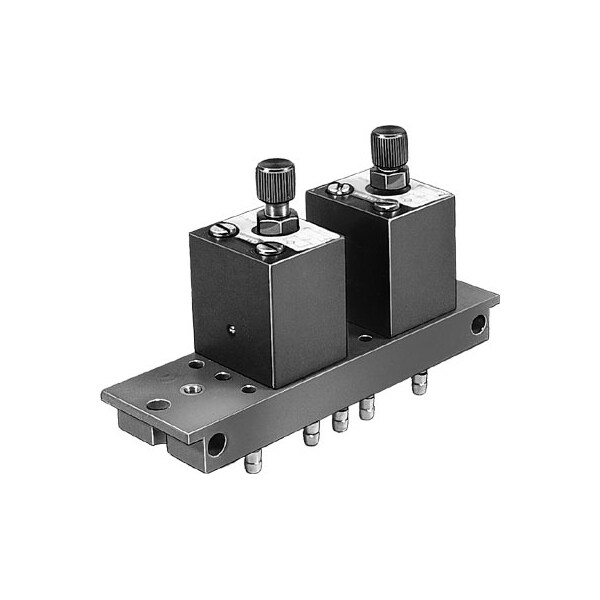 One-Way Flow Control Valve Grf-Pk-3X2 With Sub-Base 2N And Barbed Fitting For Tubing Nd 3. Valve Function=One-Way Flow Control Function, Pneumatic Connection, Port 1=Pk-3, Pneumatic Connection, Port 2=Pk-3, Adjusting Element=Knurled Screw, Mounting Type=With Through Hole