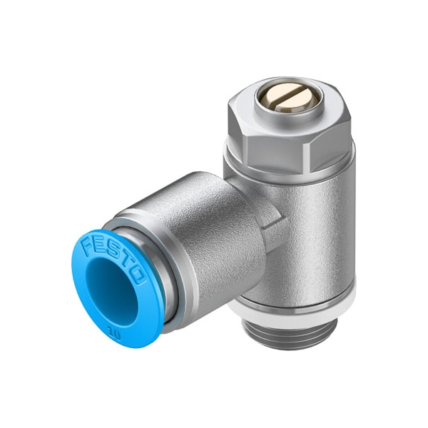 One-Way Flow Control Valve Grla-1/4-Qs-10-D Valve Function=One-Way Flow Control Function For Exhaust Air, Pneumatic Connection, Port 1=Qs-10, Pneumatic Connection, Port 2=G1/4, Adjusting Element=Slotted Head Screw, Mounting Type=Threaded