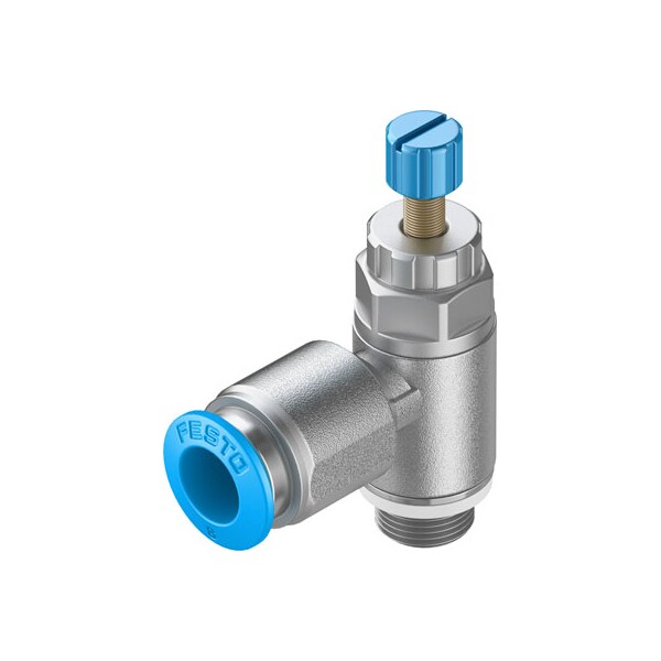 One-Way Flow Control Valve Grla-1/8-Qs-8-Rs-D With Knurled Screw And Lock Nut Valve Function=One-Way Flow Control Function, Pneumatic Connection, Port 1=Qs-8, Pneumatic Connection, Port 2=G1/8, Adjusting Element=Knurled Screw, Mounting Type=(* Threaded, * With External (Male) Thread)