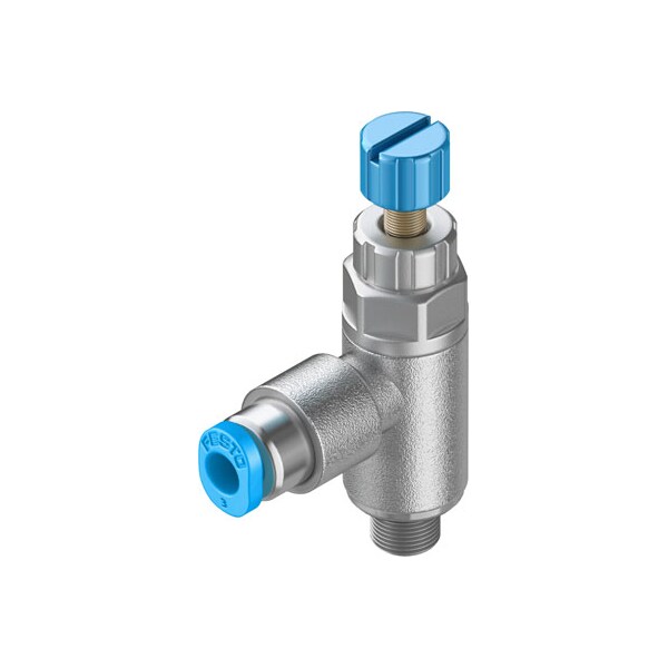 One-Way Flow Control Valve Grla-M5-Qs-3-Rs-D With Knurled Screw And Lock Nut Valve Function=One-Way Flow Control Function For Exhaust Air, Pneumatic Connection, Port 1=Qs-3, Pneumatic Connection, Port 2=M5, Adjusting Element=Knurled Screw, Mounting Type=Threaded