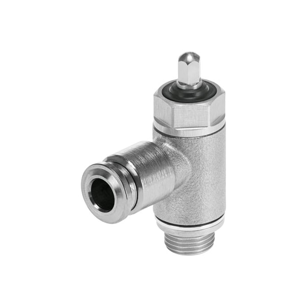 One-Way Flow Control Valve Vfoh-Le-A-G18-Q4 Valve Function=One-Way Flow Control Function For Exhaust Air, Pneumatic Connection, Port 1=Qs-4, Pneumatic Connection, Port 2=G1/8, Type Of Actuation=Manual, Adjusting Element=External Hex