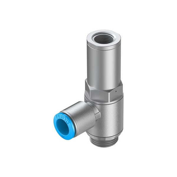 Piloted Check Valve Hgl-1/2-Qs-12 With Sealing Ring Ol, With Qs Push-In Fitting. Valve Function=Piloted Non-Return Function, Pneumatic Connection, Port 1=Qs-12, Pneumatic Connection, Port 2=G1/2, Type Of Actuation=Pneumatic, Pilot Air Port 21=G3/8