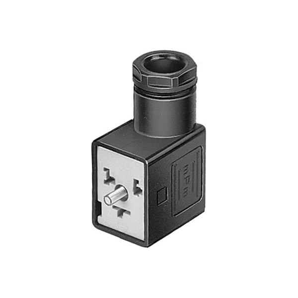 Plug Socket Mssd-V For Solenoid Coils And Valves, Port Pattern Per Din En 175 301, Type B. Mounting Type=On Solenoid Valve With M3 Central Screw, Assembly Position=Any, Product Weight=18 G, Electrical Connection=(* 3-Pin, * Plug Socket, * Plug Socket Angled, * Plug Pattern Type B To En 175301-803, * Per Din En 175301-803, * Rectangular Design, Msv), Cable Gland Connection=Pg9