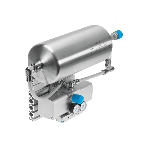 Pressure Booster Dpa-40-10-Crvzs2 Combination Of Pressure Booster And Air Reservoir In Stainless Steel Design Piston Diameter=40 Mm, Volume=2 L, Assembly Position=Any, Design Structure=(* Twin-Piston Pressure Booster, * With Air Reservoir, * With Pressure Gauge, * With Non-Return Valve), Pressure Gauge=With Pressure Gauge