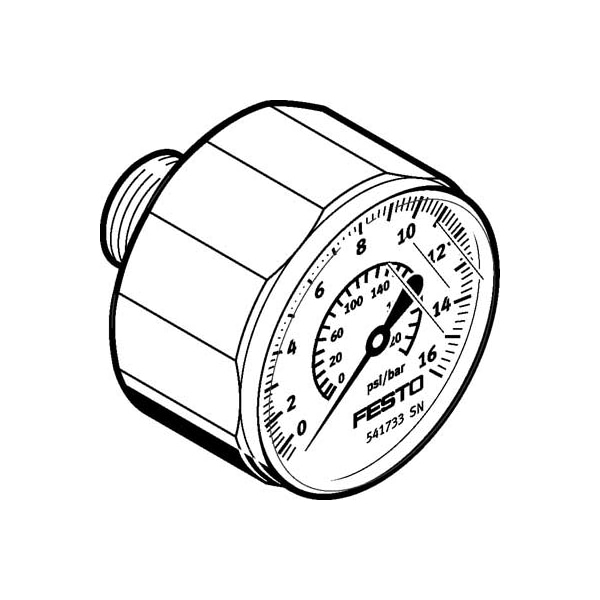 Pressure Gauge Ma-27-16-R1/8 With Display Unit In Bar And Psi. Indicating Range [Bar]=0 - 16 Bar, Nominal Size Of Pressure Gauge=27, Design Structure=Bourdon-Tube Pressure Gauge, Mounting Type=Line Installation, Operating Medium=(* Inert Gases, * Neutral Fluids)