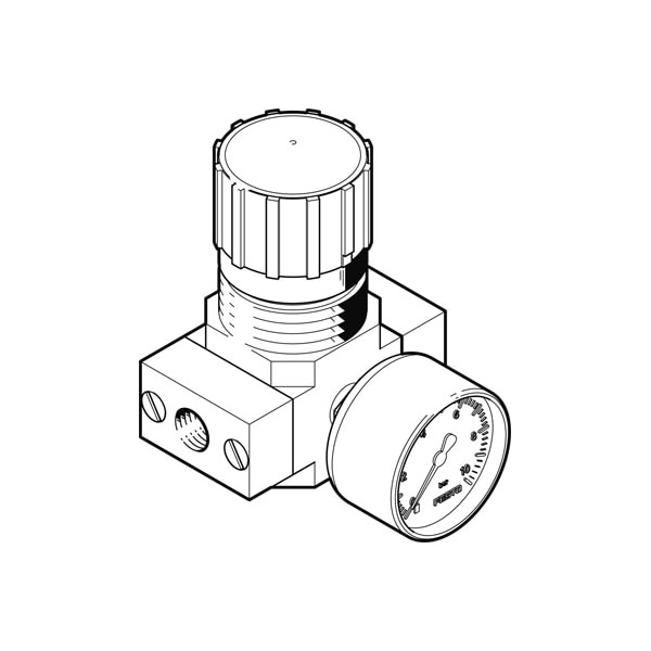 Pressure Regulator Lr-N1/8-D7-Micro With Threaded Connection Plate And Pressure Gauge Size=Micro, Series=D, Assembly Position=Any, Operating Pressure=1 - 10 Bar, Pressure Regulation Range=0,5 - 7 Bar