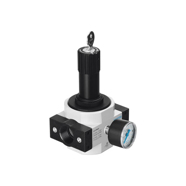 Pressure Regulator Lrs-1/4-D-Mini With Lockable Regulator Head, Working Pressure Up To 12 Bar. Size=Mini, Series=D, Actuator Lock=Rotary Knob With Integrated Lock, Assembly Position=Any, Design Structure=Directly-Controlled Diaphragm Regulator