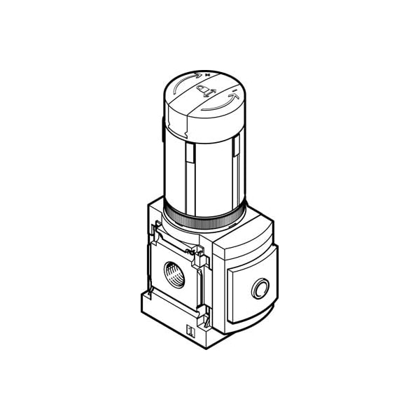 Pressure Regulator Ms4-Lr-1/8-D6-A8 Maximum Output Pressure 7 Bar, Without Pressure Gauge, Flow Direction From Left To Right. Size=4, Series=Ms, Assembly Position=Any, Design Structure=Directly-Controlled Diaphragm Regulator, Controller Function=(* Output Pressure Constant, * With Secondary Exhaust, * With Return Flow)