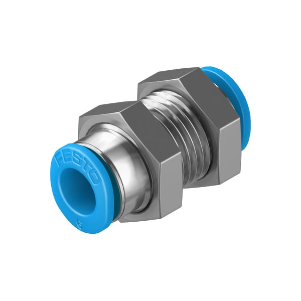 Push-In Bulkhead Connector Qsms-6 Size=Mini, Nominal Size=3,7 Mm, Assembly Position=Any, Container Size=10, Design Structure=Push/Pull Principle