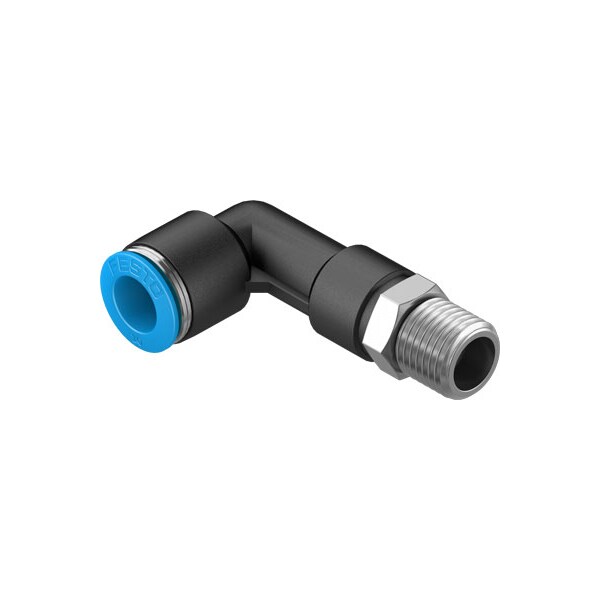 Push-In L-Fitting, Long Qsll-1/4-10 360° Orientable, Male Thread With External Hexagon. Size=Standard, Nominal Size=8 Mm, Type Of Seal On Screw-In Stud=Coating, Assembly Position=Any, Container Size=10