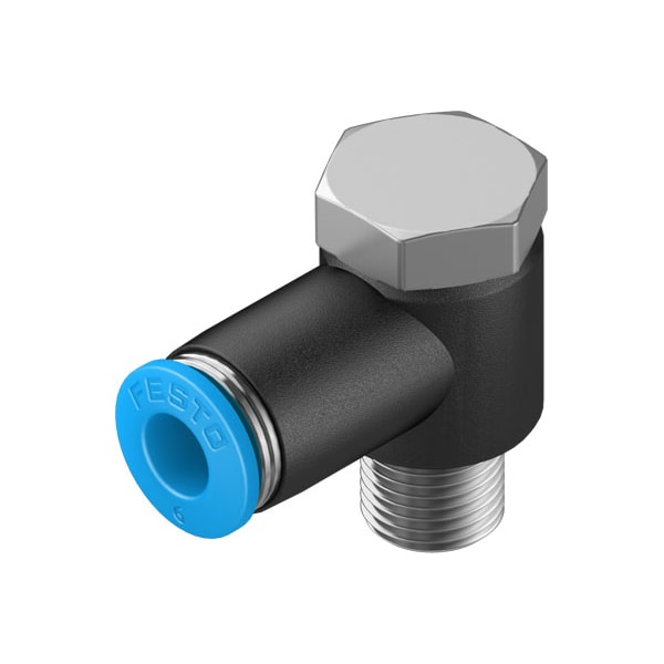 Push-In L-Fitting Qslv-1/8-6 360° Orientable, Male Thread With External Hexagon. Size=Standard, Nominal Size=4,6 Mm, Type Of Seal On Screw-In Stud=Coating, Assembly Position=Any, Container Size=10