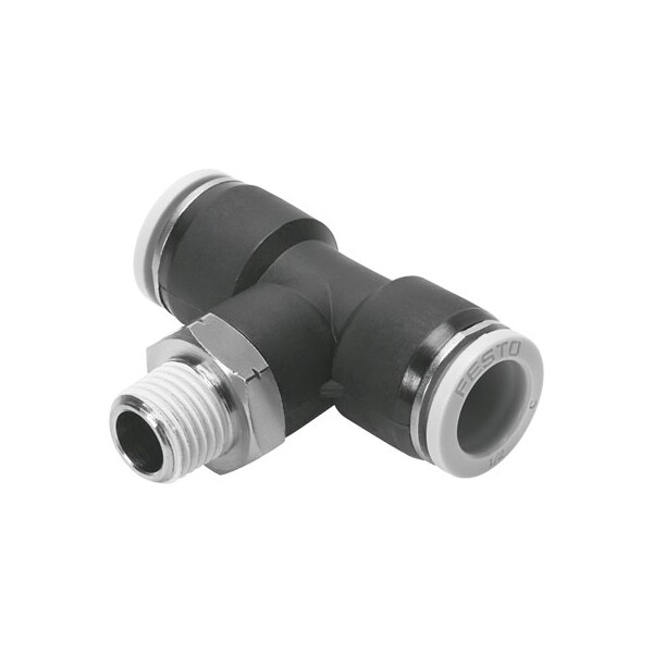 Push-In T-Fitting Qbt-1/4-3/8-U 360° Orientable, Male Thread With External Hexagon. Size=Standard, Nominal Size=0,315 ", Type Of Seal On Screw-In Stud=Coating, Assembly Position=Any, Design Structure=Push/Pull Principle