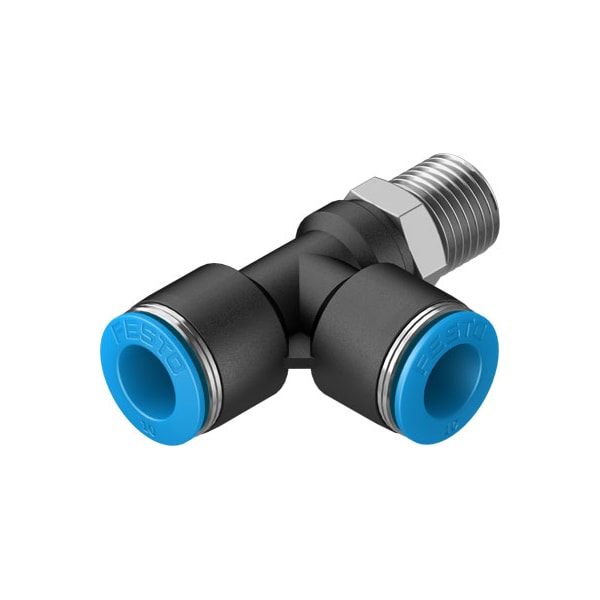Push-In T-Fitting Qstl-1/4-10 360° Orientable, Male Thread With External Hexagon. Size=Standard, Nominal Size=8 Mm, Type Of Seal On Screw-In Stud=Coating, Assembly Position=Any, Container Size=10