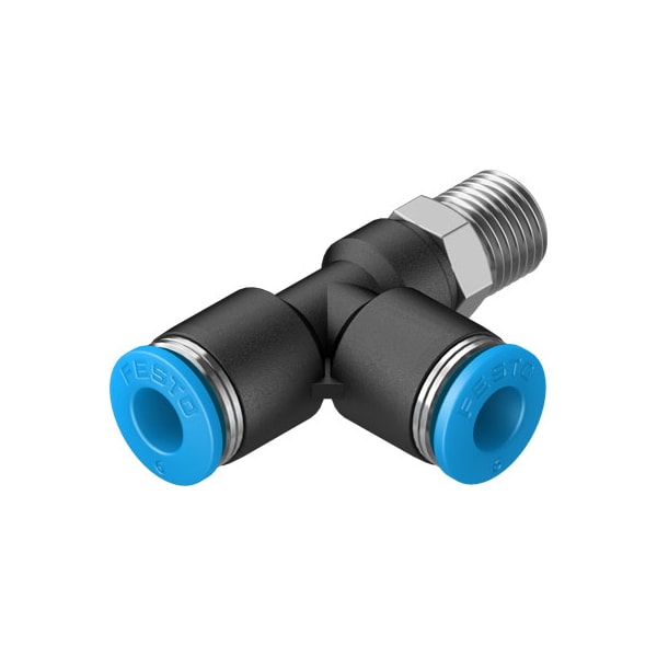 Push-In T-Fitting Qstl-1/8-6 360° Orientable, Male Thread With External Hexagon. Size=Standard, Nominal Size=4,3 Mm, Type Of Seal On Screw-In Stud=Coating, Assembly Position=Any, Container Size=10
