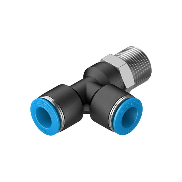 Push-In T-Fitting Qstl-3/8-10 360° Orientable, Male Thread With External Hexagon. Size=Standard, Nominal Size=8,3 Mm, Type Of Seal On Screw-In Stud=Coating, Assembly Position=Any, Container Size=10