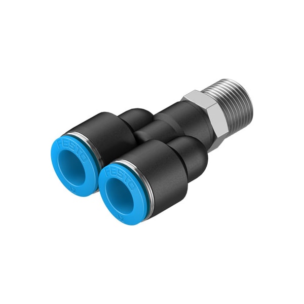 Push-In Y-Fitting Qsy-3/8-12 360° Orientable, Male Thread With External Hexagon. Size=Standard, Nominal Size=8,4 Mm, Type Of Seal On Screw-In Stud=Coating, Assembly Position=Any, Container Size=10