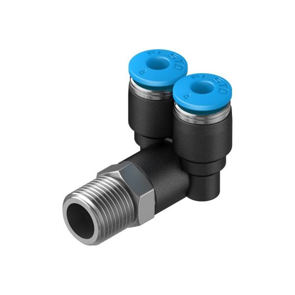 Push-In Y-Fitting Qsyl-1/8-4 360° Orientable, Male Thread With External Hexagon. Size=Standard, Nominal Size=3,9 Mm, Type Of Seal On Screw-In Stud=Coating, Assembly Position=Any, Container Size=1