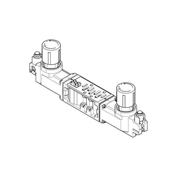 Regulator Plate Vabf-S2-2-R5C2-C-6 Width=54 Mm, Based On The Standard=Iso 5599-2, Assembly Position=Any, Pneumatic Vertical Stacking=Pressure Regulator For 2 And 4 Reversible, Controller Function=(* Output Pressure Constant, * With Secondary Exhaust)