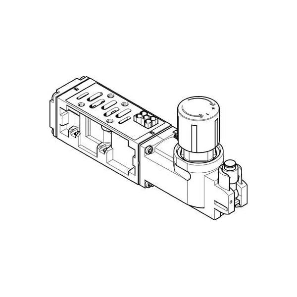 Regulator Plate Vabf-S2-2-R7C2-C-10 Width=54 Mm, Based On The Standard=Iso 5599-2, Assembly Position=Any, Pneumatic Vertical Stacking=Pressure Regulator For 4 Reversible, Controller Function=(* Output Pressure Constant, * With Secondary Exhaust)