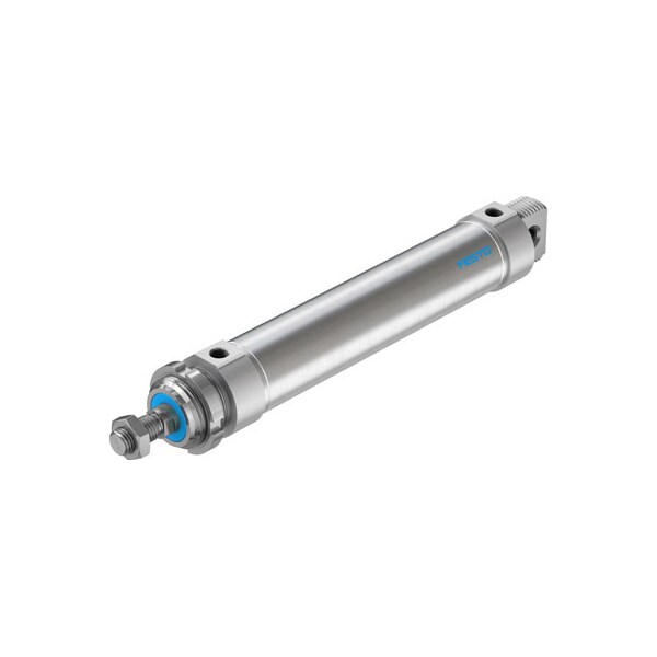 Round Cylinder Dsnu-50-200-Ppv-A For Position Sensing, With Adjustable End-Position Cushioning. Various Mounting Options, With Or Without Additional Mounting Components. Stroke=200 Mm, Piston Diameter=50 Mm, Piston Rod Thread=M16X1,5, Cushioning=Ppv: Pneumatic Cushioning Adjustable At Both Ends, Assembly Position=Any