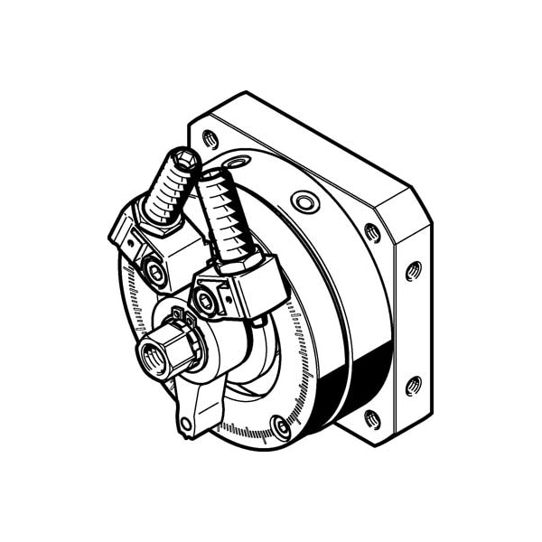 Semi-Rotary Drive Dsm-25-270-P1-Fw-A-B With Flanged Shaft, Elastic Cushioning Rings/Pads At Both Ends With Fixed Stop. Size=25, Cushioning Angle=7,5 Deg, Rotation Angle Adjustment Range=0 - 246 Deg, Swivel Angle=0 - 246 Deg, Cushioning=P1: Flexible Cushioning Rings/Plates With Stop At Both Ends