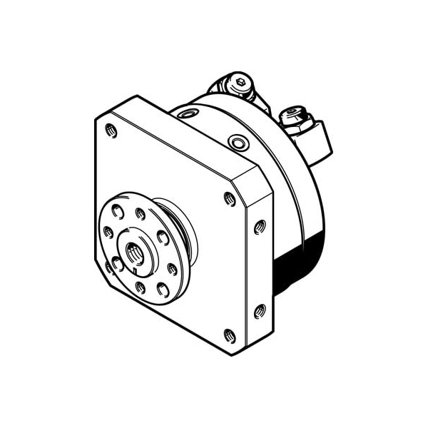 Semi-Rotary Drive Dsm-32-270-P-Fw-A-B With Flanged Shaft, Fixed Stop And Position Sensing Size=32, Cushioning Angle=1,4 Deg, Rotation Angle Adjustment Range=0 - 270 Deg, Swivel Angle=0 - 270 Deg, Cushioning=P: Flexible Cushioning Rings/Plates At Both Ends