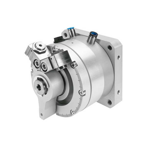 Semi-Rotary Drive Dsmi-63-270-A-B With Integrated Displacement Encoder. Optional Endposition Sensing Via Proximity Sensors Type Sme/Smt-10F-...-Kl. Rotation Angle Adjustment Range=0 - 270 Deg, Stroke Shortening In The End-Positions=5 °, Smallest Positioning Stroke=(* 5° For Positioning, * 15° With Soft Stop), Piston Diameter=63 Mm, Swivel Angle=0 - 272 Deg