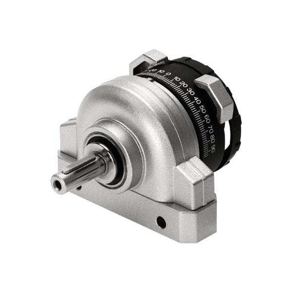 Semi-Rotary Drive Dsr-16-180-P Rotary Vane Principle, Infinitely Adjustable Swivel Angle. The Stop System Is Separate From The Rotary Vane So That Any Forces Which Occur Are Absorbed By The Stop Cams And Cushioned Via Flexible Plastic Pads. Size=16, Cushioning Angle=2,1 Deg, Rotation Angle Adjustment Range=0 - 180 Deg, Swivel Angle=0 - 180 Deg, Cushioning=P: Flexible Cushioning Rings/Plates At Both Ends