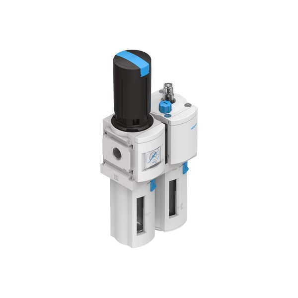 Service Unit Combination Msb6-1/2-Frc11:J9M2 Filter-Regulator-Lubricator Combination, 12 Bar Maximum Output Pressure, 5 μm Filter, With Pressure Gauge, Lockable Regulator Head, Metal Bowl, Manual Condensate Drain, Direction Of Flow: From Left To Right. Size=6, Series=Ms, Actuator Lock=Rotary Knob With Integrated Lock, Assembly Position=Vertical +/- 5°, Condensate Drain=Manual Rotary